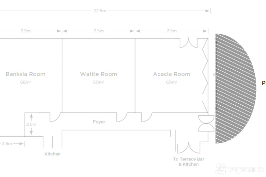 Featuring large windows that invite natural light into the room, this venue in Adelaide has the flexibility to connect to the adjacent Wattle room to transform into Banksia + Wattle, or into the full Botanical room if more space is required.