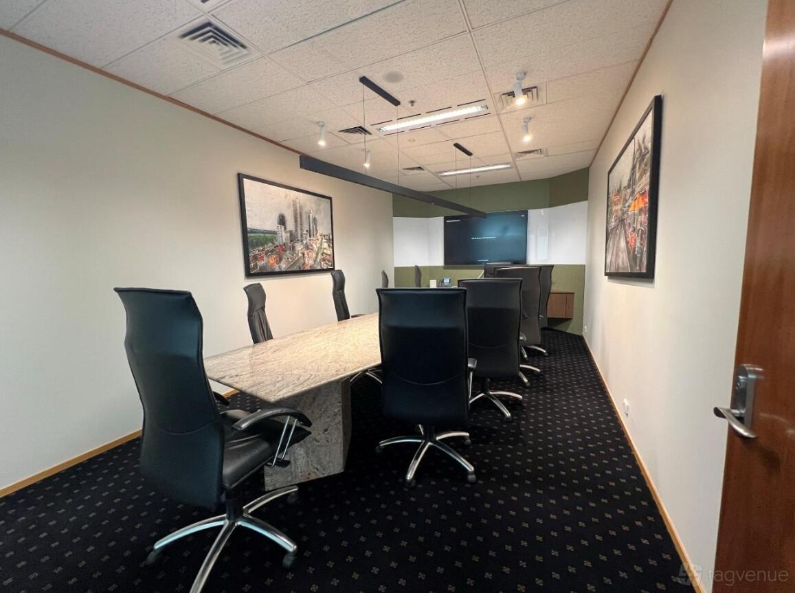 The Boardroom at Servcorp can accommodate 10 people. Inside, you'll find a large TV, comfortable chairs, and a table. It is a great fit for larger meetings, presentations, or workshops.