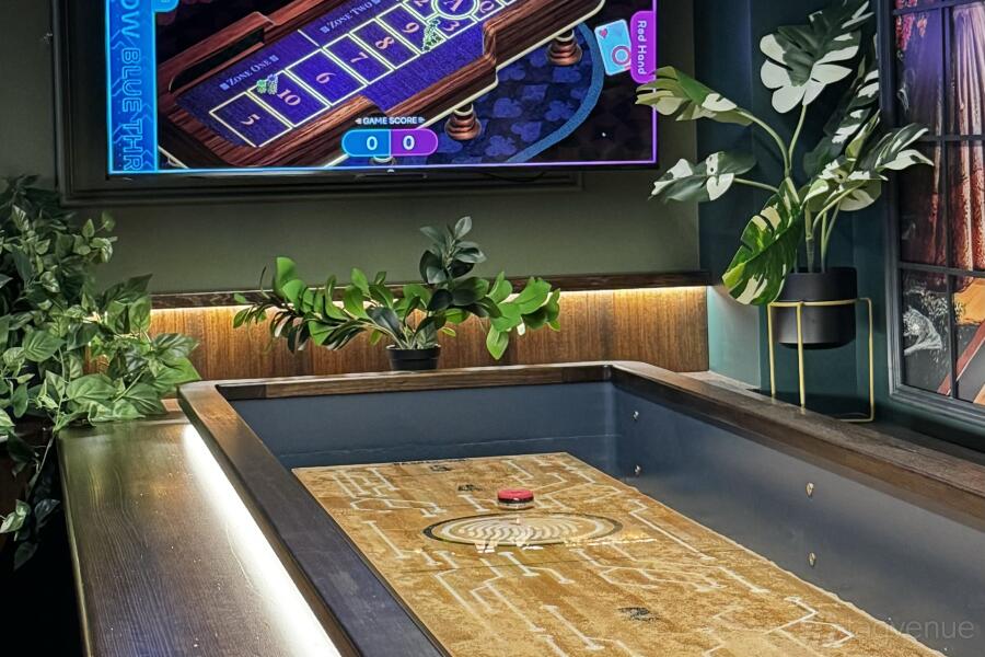 Featuring shuffleboard, social darts, ping pong and a ball pit birdcage, the space is buzzing with energy.