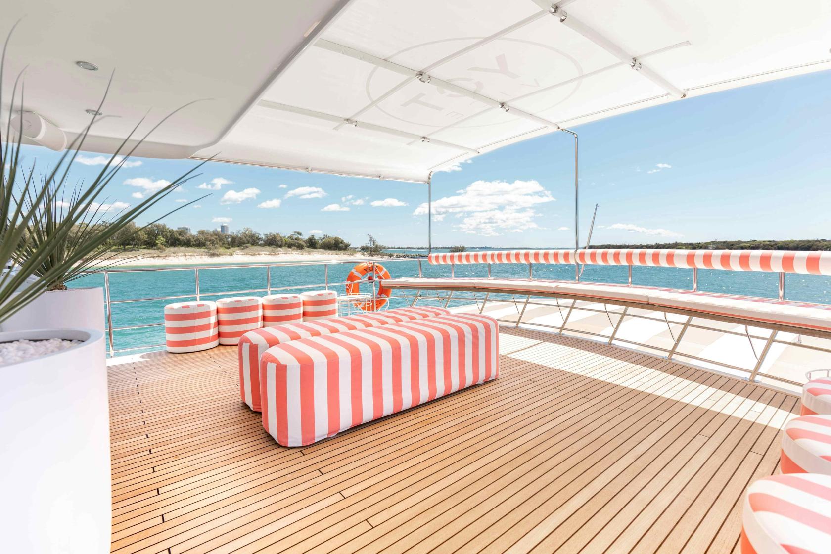 YOT Vice is a stunning private charter boat, licensed for up to 76 guests, offering a luxurious Brisbane River experience. Spread across two levels, this vessel boasts a full bar, cocktail service, and onboard catering, all designed to create unforgettable events. The sleek interior blends Queensland’s tropical vibe with resort-inspired elegance, providing a sophisticated marine setting for your celebration.