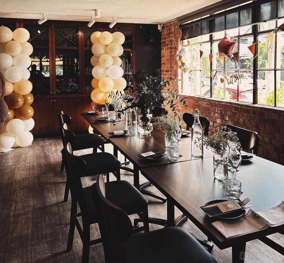 Two function areas can accommodate sit down dinners for 10-30 people and cocktail events for up to 60. The wine cellar room is cosy and vibey, with exposed brick and burgundy run the internal walls. Alternatively, you can make use of the chilled outside area on a balmy summer night (hello to your next party venue).