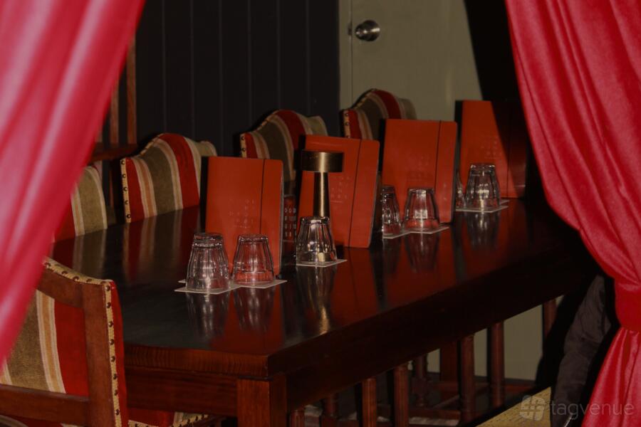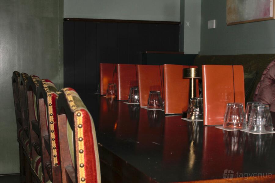 The Main Bar is our largest and most versatile space, seating up to 30 guests. Featuring a mix of high and low tables, a cozy couch area, and a welcoming fireplace, it’s perfect for both sit-down dining and cocktail-style events.