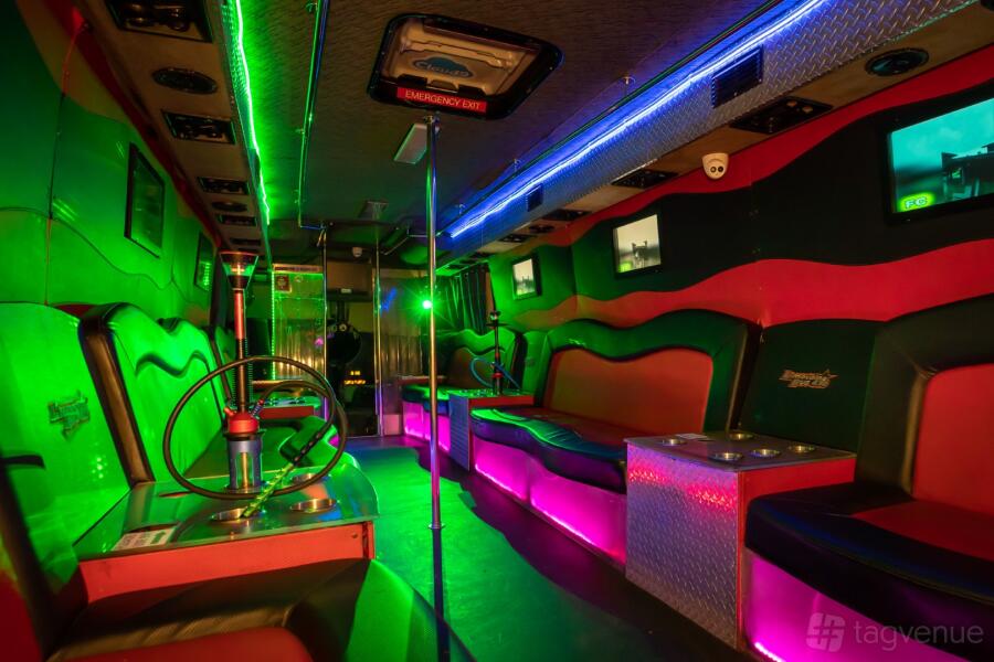 Limobus 430 offers a unique and dynamic venue for hire, transforming traditional event spaces into a mobile party experience. Each bus is equipped with air conditioning, onboard toilets, flat-screen TVs, bench seating, electric shishas, club lighting, dancing poles, and a state-of-the-art sound system, ensuring comfort and entertainment throughout your journey.