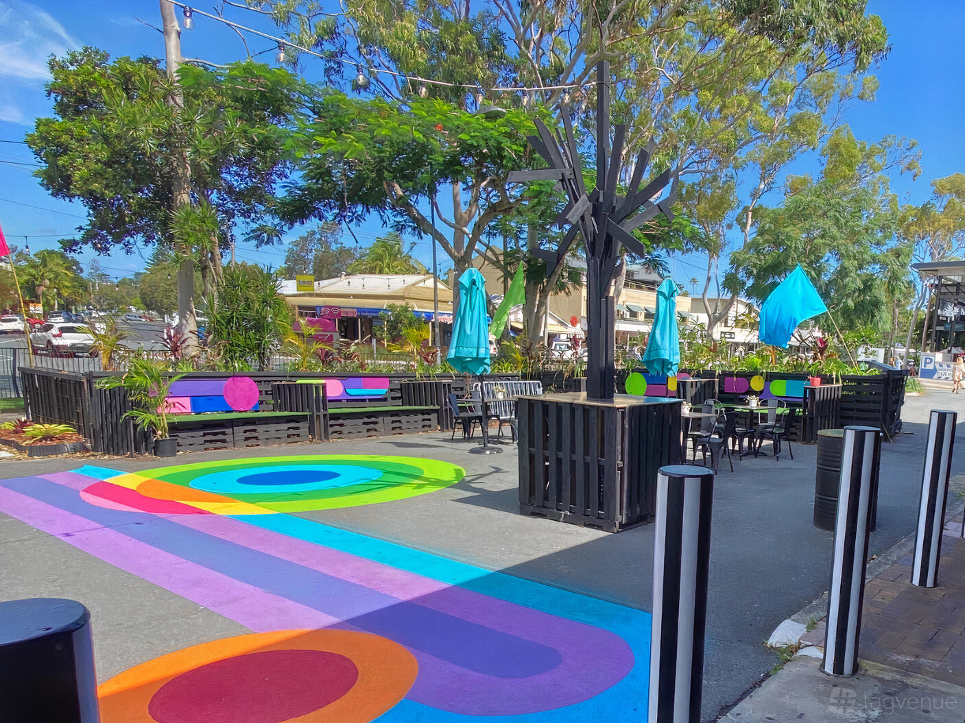 On outdoor space, right on the main street of Byron Bay. This space is the perfect night under the stars and festoon lighting to gather, enjoy company, food, drinks and tunes.