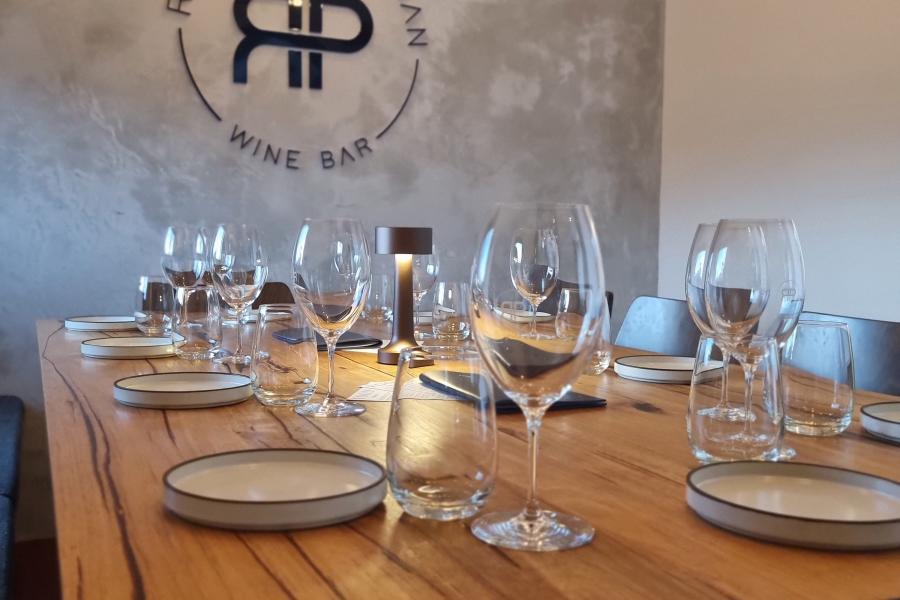 Our wine bar is the perfect spot for wine enthusiasts to unwind and enjoy a glass of their favorite vintage. The cozy restaurant setting combined with a fully stocked bar and shelves lined with various wine bottles creates a warm and inviting atmosphere.