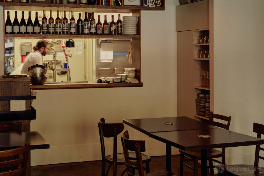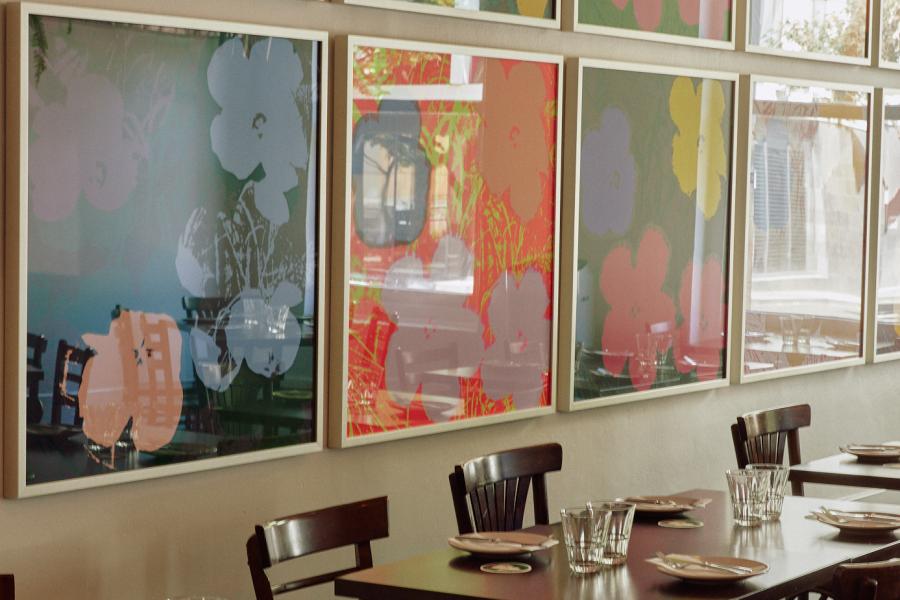 The lovely low-lit Private Dining Room has the warmth of a wood-panelled bar and elegance of high ceilings in a deep midnight blue, all overseen by an original 40-year old vintage poster by Bernard Villemot of figures dancing and leaping with joy with their Orangina soda, an absolute showstopper in its scale. It makes it one of Melbourne’s most secluded and beautiful Private Dining Rooms.
