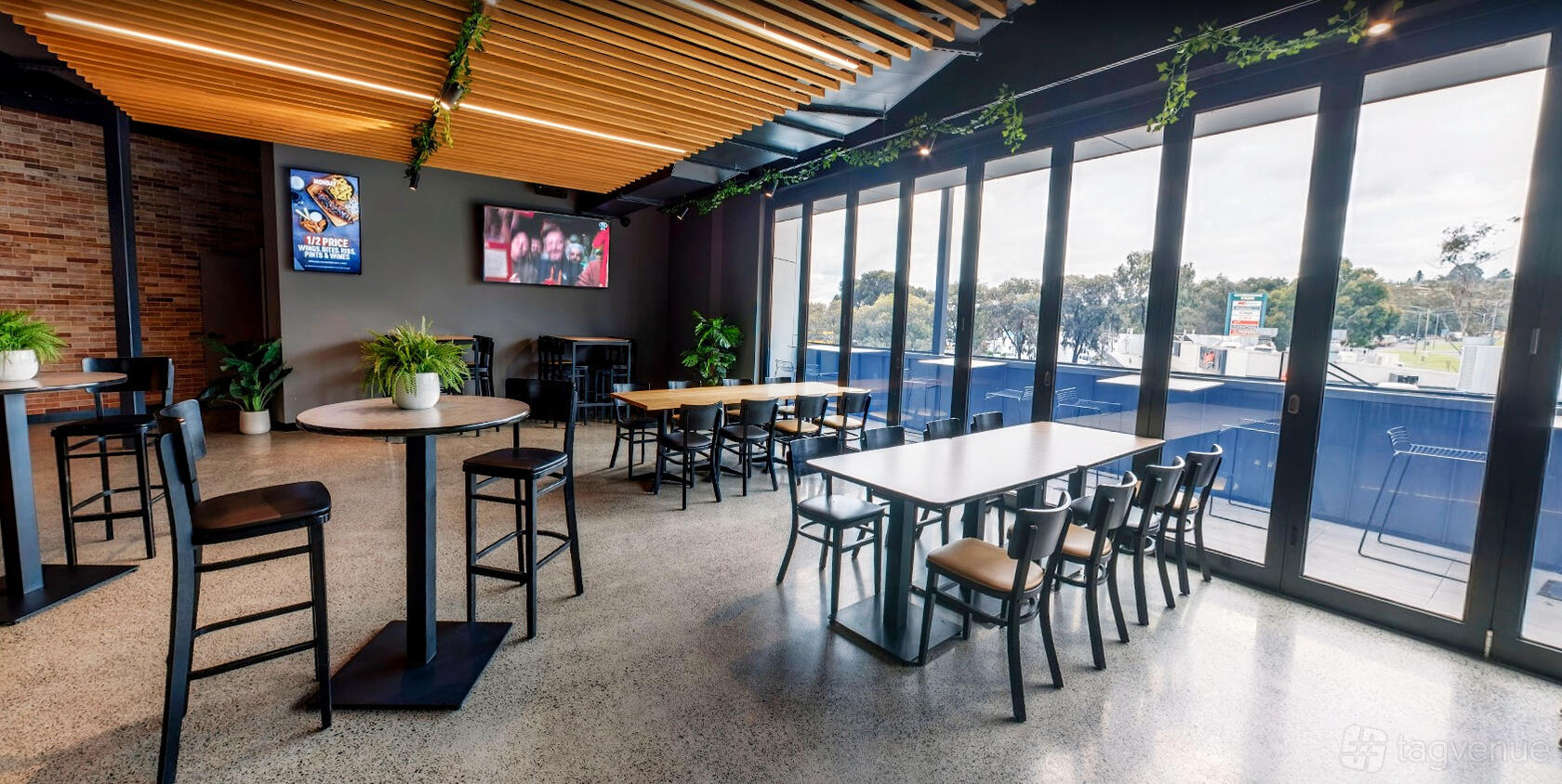 An option for smaller groups. Totally private with it's own entrance. Includes a private bar & alfresco area, state-of-the-art audio & visual fitout with multiple TV screens, entertainment space for DJ/musician, lift access & private toilets.