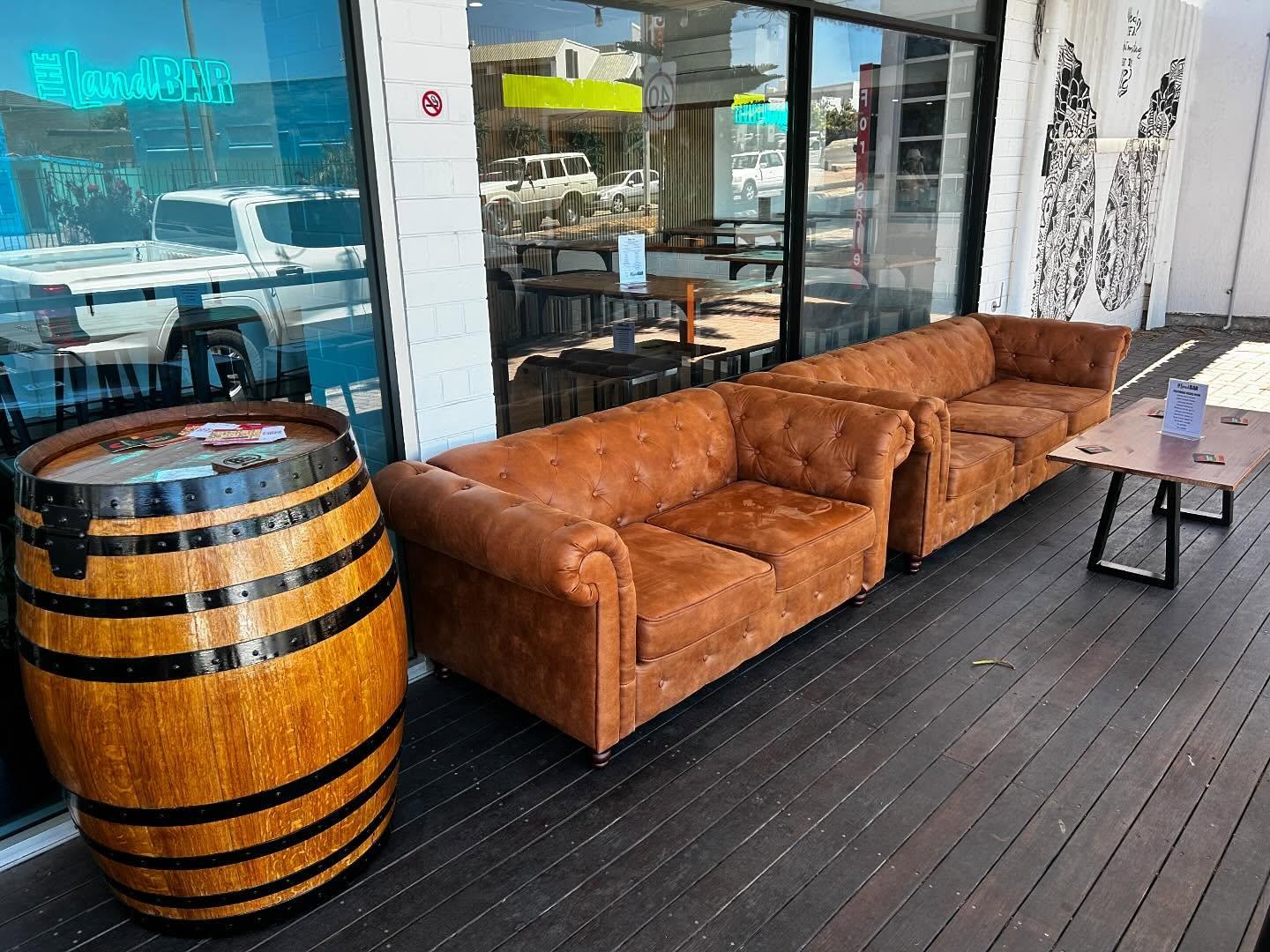 The Outside Deck at The LandBAR can host up to 40 guests. There are couches and high tables. It's suitable for smaller functions with drinks. The Deck is overlooking the ocean too!