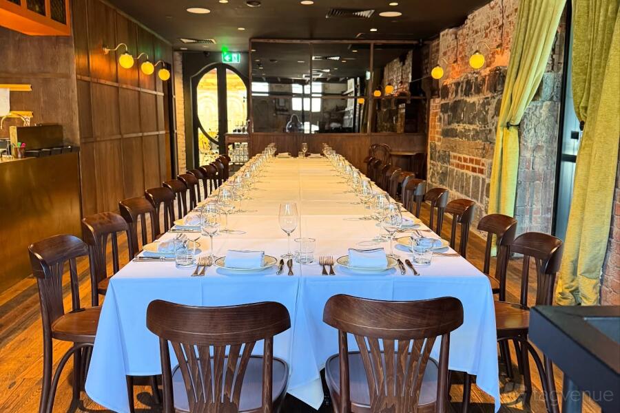 Orlo is a three-level Mediterranean restaurant in Collingwood. Once a cordial factory, the venue has been transformed into a modern, rustic-style space while maintaining its original charm and design. The restaurant features a ground-floor dining room and courtyard, a private dining mezzanine, and a basement bar.