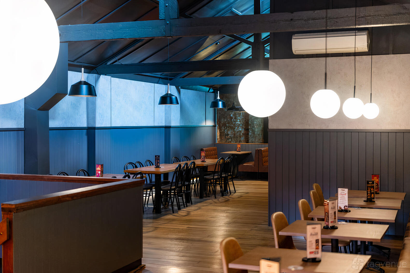 The entire space of our venue is available for private functions and parties, accommodating up to 120 guests. This exclusive space is perfect for various events, offering a dedicated area for you and your guests to enjoy in complete privacy. The venue is equipped with a projector screen, ideal for presentations or visual displays, and we can arrange both recorded and live music to enhance the ambience as requested.