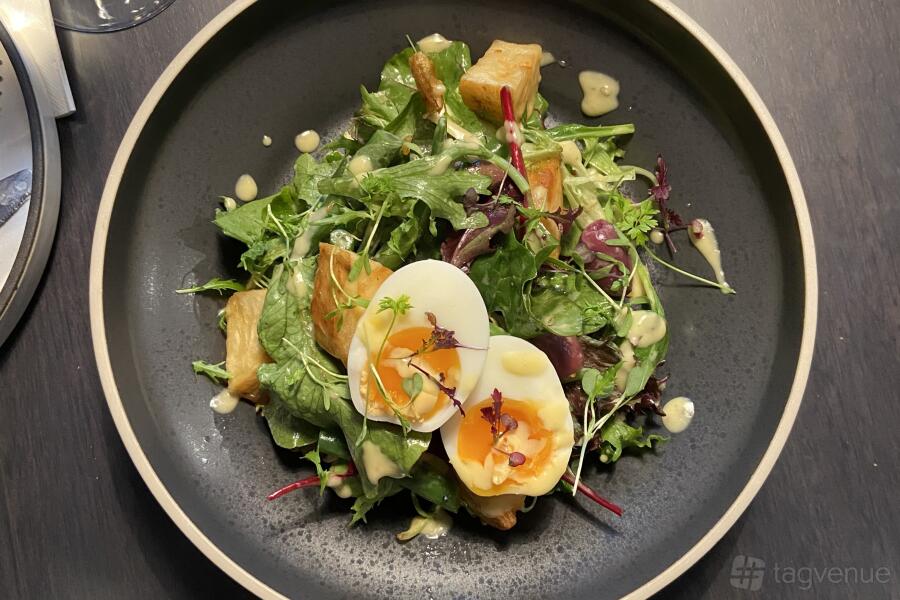 • Burrata & Zucchini Salad (V, gf) - basil pesto, harissa chilli oil — $33