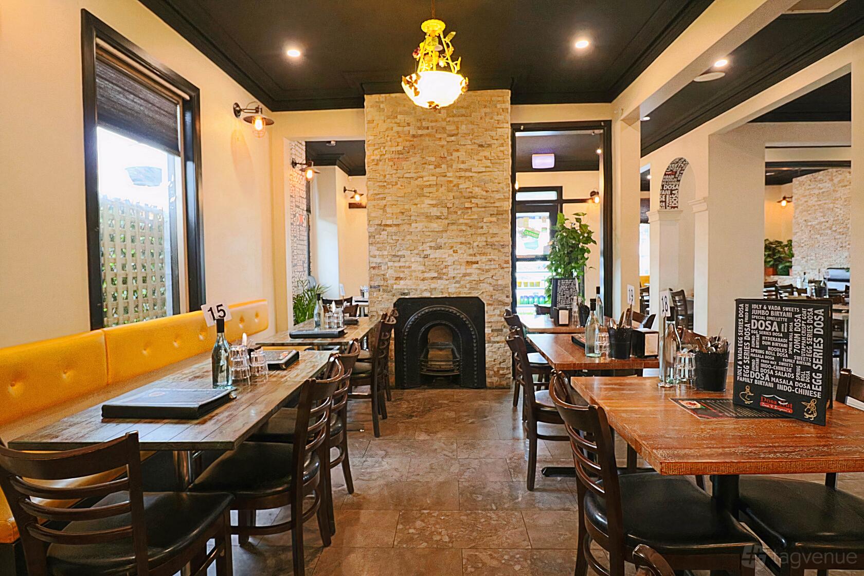 The semi-private area is perfect for family dinners, casual meetups, or small celebrations, offering a relaxed space where guests can comfortably enjoy the rich flavors of South Indian cuisine. The menu boasts a variety of signature dosas, curries, and other traditional dishes, ensuring a memorable dining experience for all attendees.