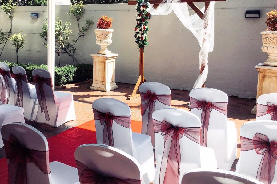 • Room hire, inclusive of setup, dance floor, microphone and white chair covers with sashes.