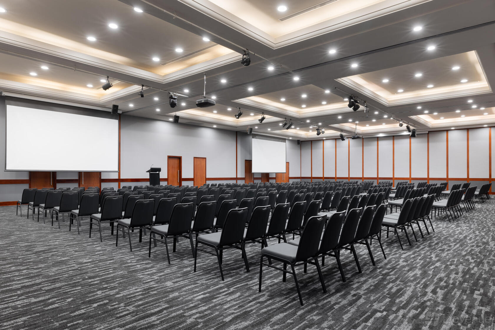 When combined, Conference Rooms 1 and 2 create a much larger, pillarless venue that can seat up to 360 delegates in a theater-style layout. The space is perfect for large-scale conferences, trade shows, or formal dinners. Combining the rooms allows to create space for a larger amount of guests, being able to fit even 220 attendees for a dining experience at a gala.