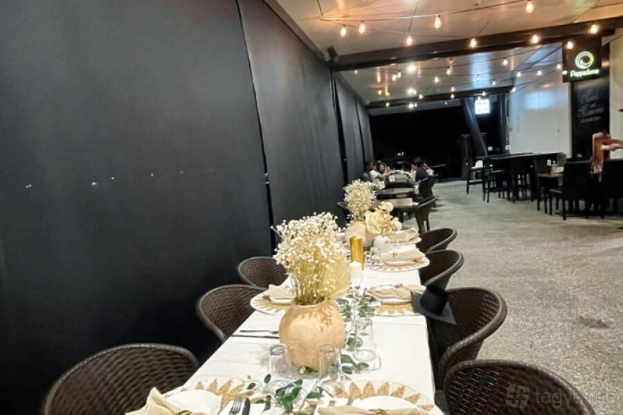 The venue is adaptable, with distinct spaces to accommodate various events. The entire venue can host larger gatherings, while the indoor area offers a cozy, intimate setting for smaller groups. There's also an outdoor space that provides a refreshing ambiance, ideal for enjoying a meal al fresco.