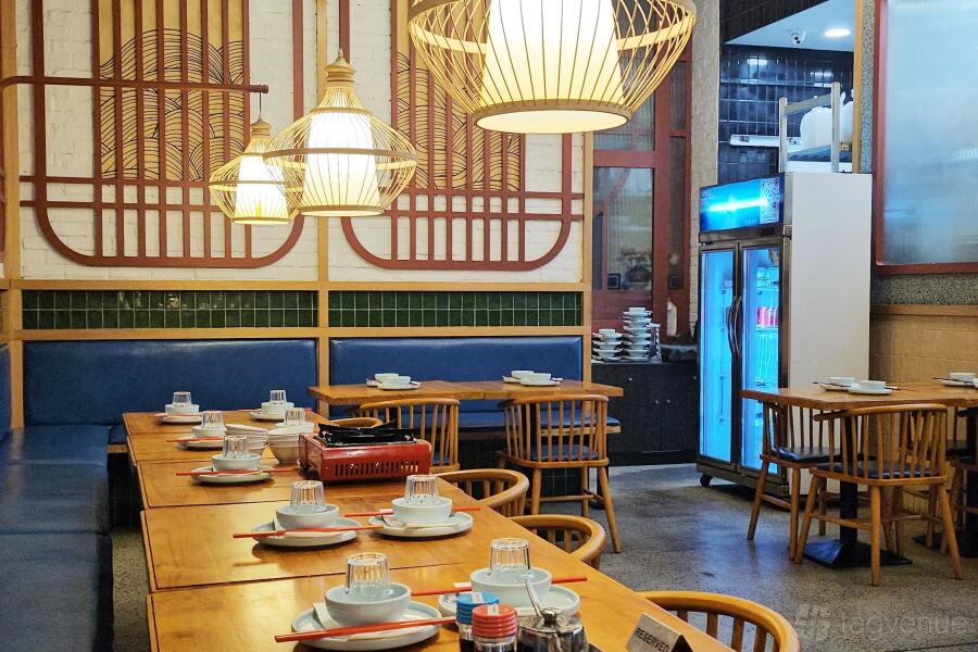 The entire venue combines the main indoor space and the back area. It fits 100 guests. The restaurant is split across two connected zones.
