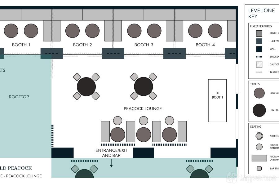 Whether you’re relaxing inside in an intimate booth or sipping cocktails on the bustling rooftop, The Emerald Peacock is truly an all-season destination.