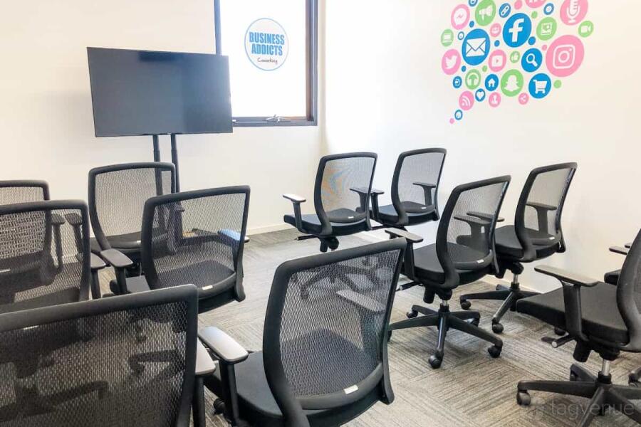 Whether you’re planning a large business meeting, a training session for 40 people seated at tables and chairs or a standup networking event for up to 80 people, Cowork + Create's Training Room can help make your next business event a huge success. With versatile set-up options, we can accommodate any event layout. Plus podcast recording studio and photography events available for add on .