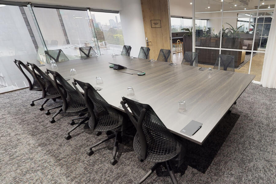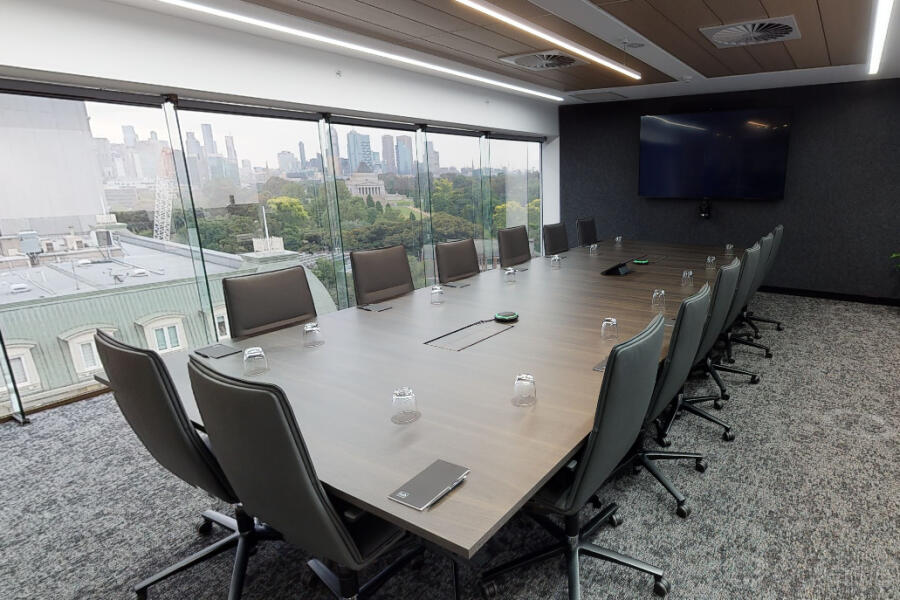 Hub St Kilda Road's purpose-designed collaboration space provides a stunning room for members and guests to work together or present ideas.