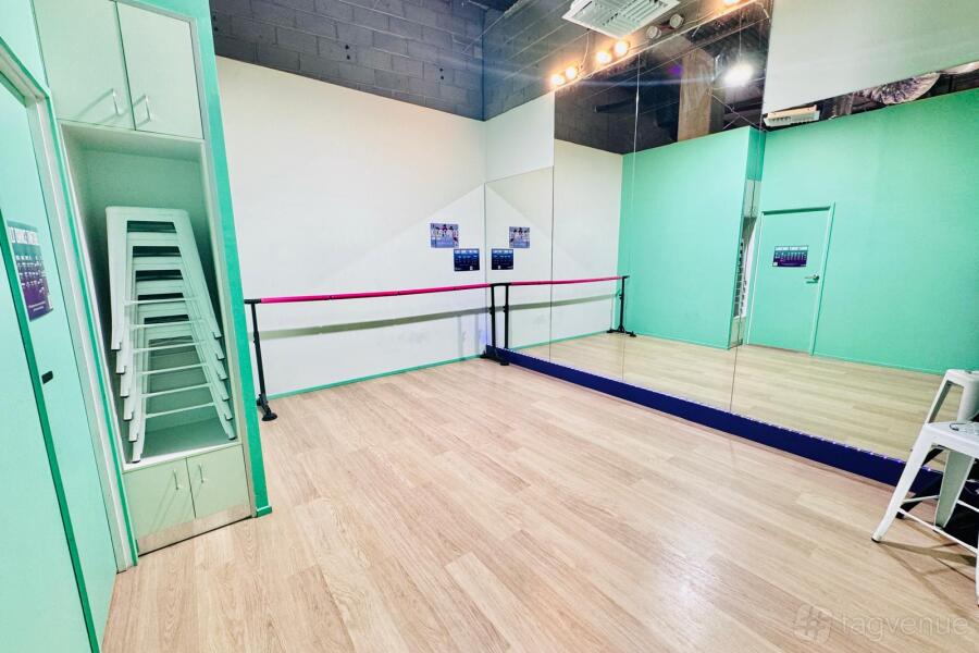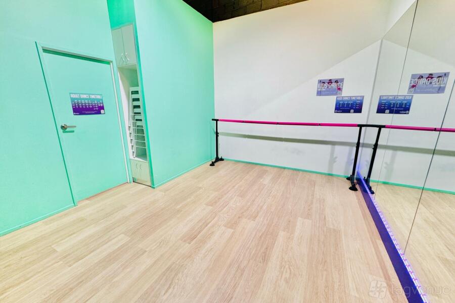 A unique and modern dance studio and events space with customisable LED lighting and laser projector, air-con, heating, wooden floors, and high ceilings.