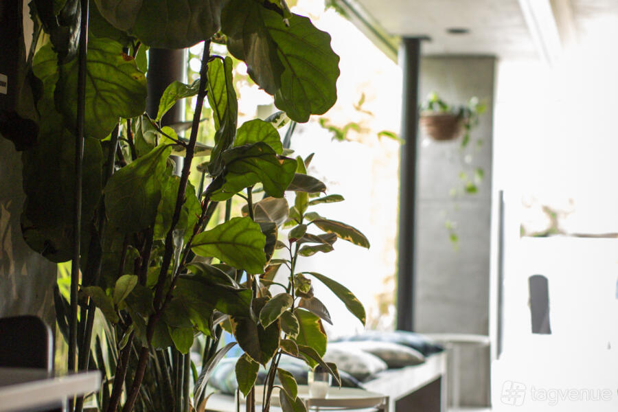 Bathed in bright natural light and adorned with vibrant plants, this versatile space welcomes the warm afternoon sunshine with open arms.