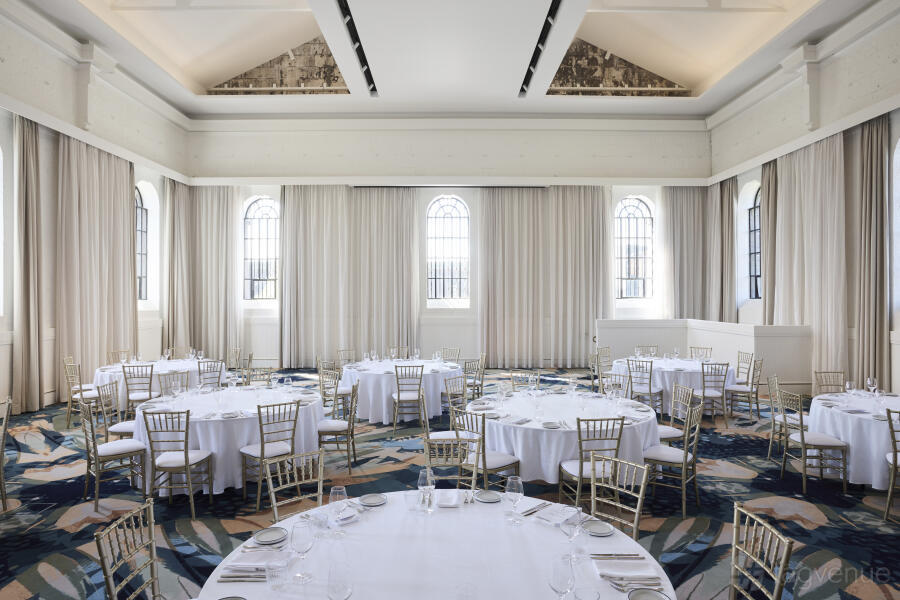 Available with Exclusive Hire of The Interlude Retreat and Olivine Wine Bar, The Long Hall is central to B-Division and measures over 50 metres in length with 15-metre-high arched ceilings and a central feature pane glass window.