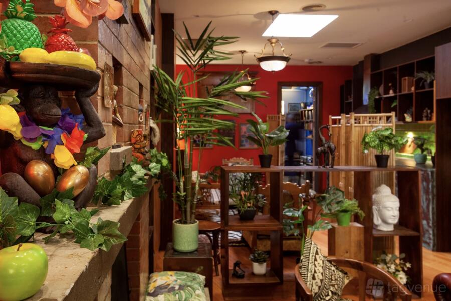 Nestled within the heart of the Pacific-themed bar lies the Blue Room, a charming oasis designed to accommodate eight guests. This cozy enclave exudes an atmosphere akin to a well-loved library, promising a warm and comfortable experience that's perfect for unwinding and savoring the ambiance.