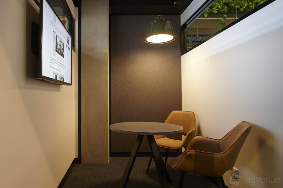 Equipped with cutting-edge technology, the 2 Person Chat Room offers a widescreen TV with wireless connectivity, enabling effortless screen sharing and presentations. Experience the convenience of sharing documents, slideshows, and visual aids in real-time, enhancing collaboration and driving effective decision-making. The room's soundproof walls create an ideal environment for maximum clarity, allowing you to focus on the conversation without any distractions.