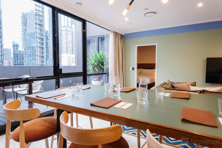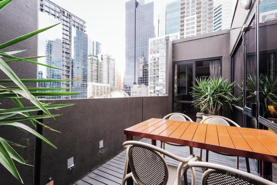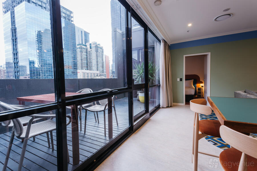 Embrace the vibrant energy of Melbourne's laneways at our funky hotel, a spirited sanctuary. After immersing yourself in the CBD's buzz, return to the funky vibes of your Memphis penthouse suite, where you can accommodate up to 30 people.