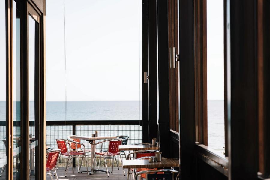 Our restaurant features a bright and airy space with floor-to-ceiling windows showcasing bay views. Enjoy the warmth of wooden furniture and floors in our open main dining room or opt for a more private setting in our semi-private room.