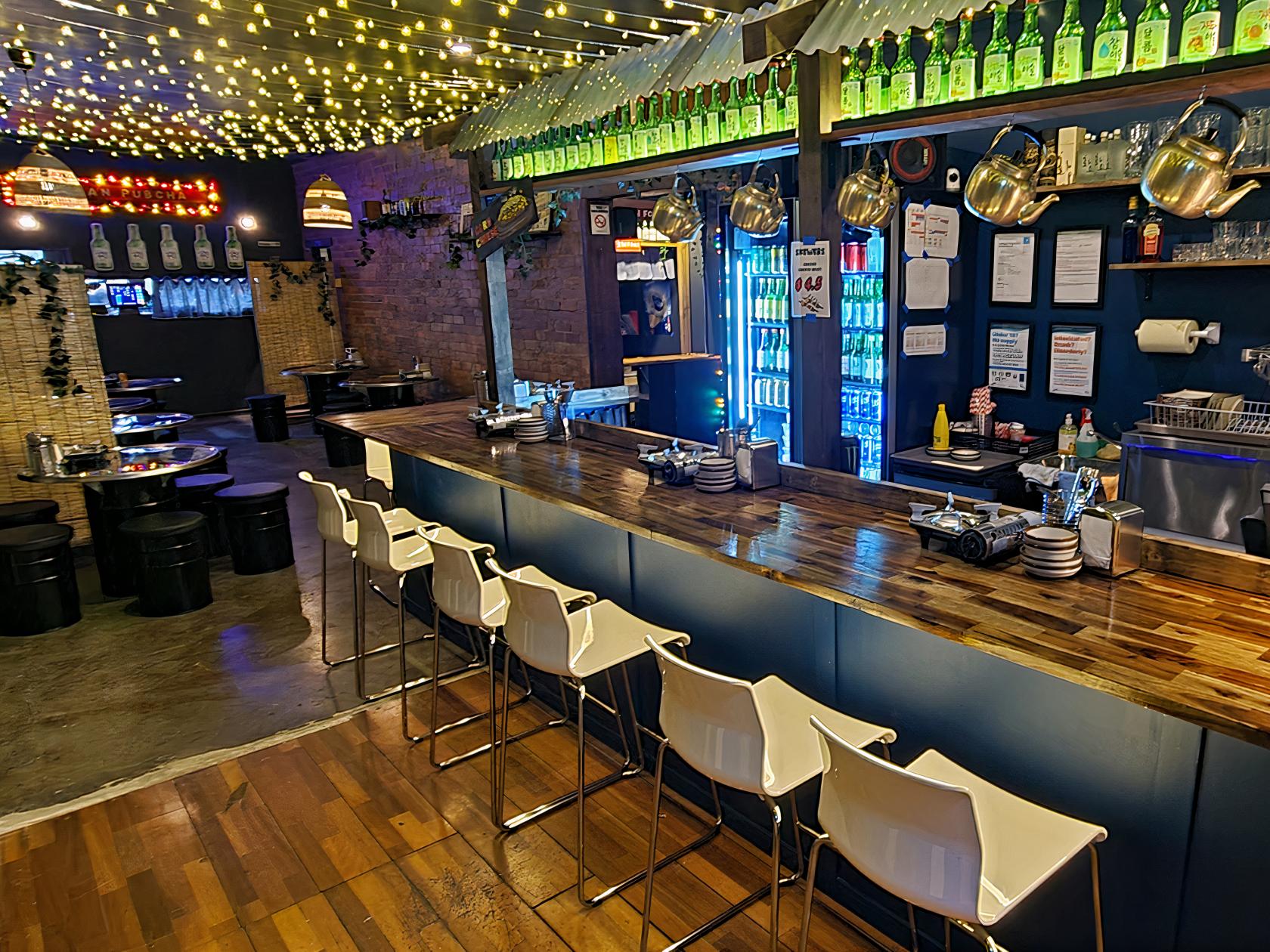 Our space boasts an authentic Korean-style street food experience, complete with an eclectic mix of traditional and contemporary decor. As you step inside, you're greeted by an industrial-chic setting that harmoniously blends exposed brick walls with warm wooden floors and quirky, colorful lighting. The atmosphere buzzes with the energy of Seoul's night markets, set against the backdrop of a cozy, yet spacious open-plan area that comfortably accommodates both intimate gatherings and larger groups.