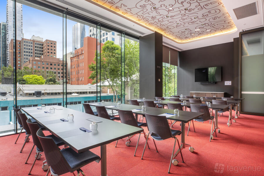The hotel's architecture combines contemporary design with a touch of Melbourne's historic charm, creating a vibrant and welcoming atmosphere. The guestrooms are thoughtfully designed with modern amenities and decorated in a stylish, minimalist fashion, providing a restful retreat.
