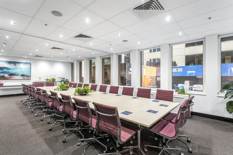 Adjacent to the Wattle boardroom, both boardrooms can be combined to create a spacious, open-plan area (see details under Double Boardroom).
