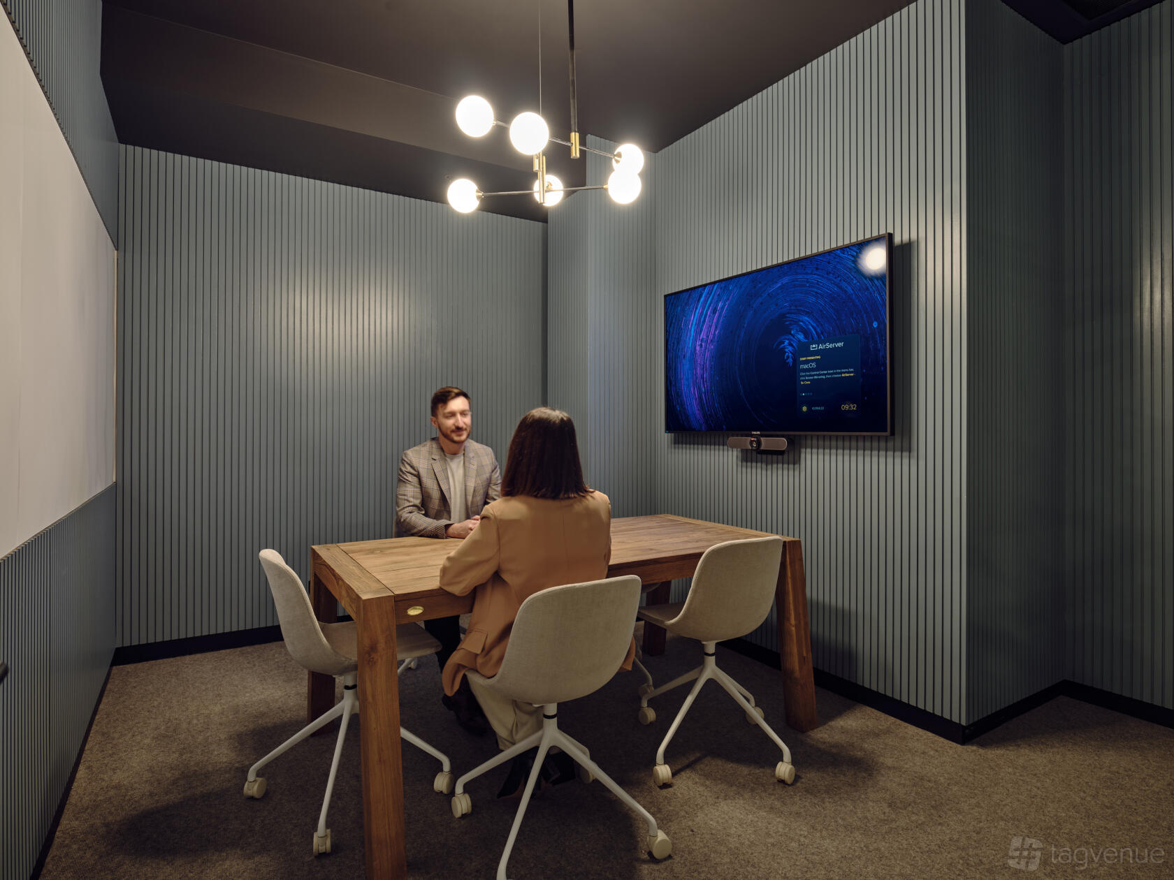 Our modern meeting room comfortably seats 16 in a boardroom layout. Ideal for strategic discussions, it is equipped with Wi-Fi, a flatscreen TV, and a whiteboard to enhance your presentations. Enjoy the convenience of conference call facilities and high-quality cameras for virtual connectivity. The room boasts air conditioning and an abundance of natural light, creating a refreshing and productive atmosphere. Catering covered to ensure your team stays fueled and focused throughout the meeting.
