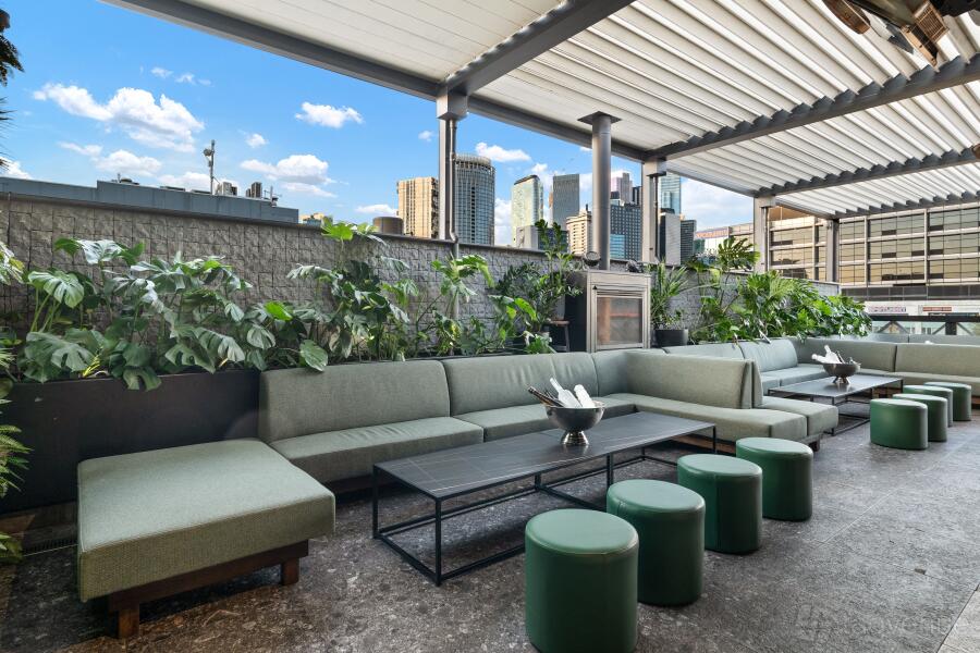 It features a modern touch combined with abundant foliage, spacious open area and accessible long bar - ideal for roaming canapes while taking in the breathtaking view. DJ booth, directional sound ceiling, smoking deck and private lift access provide a luxurious feel guaranteed to impress and motivate your guests!