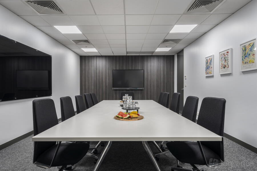 Meeting Room 1 at Sector Serviced Offices in Wheelers Hill, Melbourne, is a modern and adaptable space made for effective meetings and discussions. With contemporary décor, lots of natural light, and top-notch technology, it offers a professional and cozy atmosphere for different business needs.