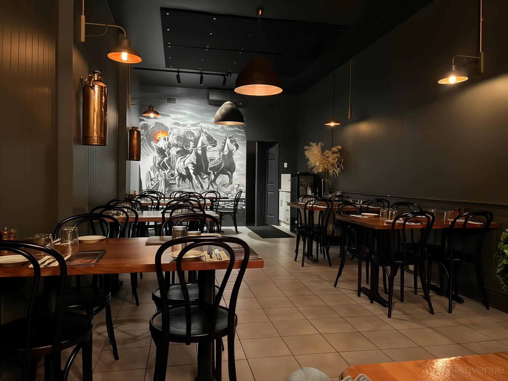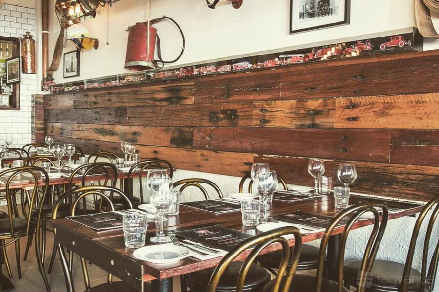 In Mortdale, this 90-square-meter gem is a versatile venue offering a cozy function room, an industrial-chic main dining area, and a charming alfresco zone. Blending modern comfort with rustic charm, it’s the ultimate spot for everything from intimate dinners to lively parties. With polished wooden furniture, vintage firehouse memorabilia, and warm, inviting lighting, the interiors exude character, while the alfresco area adds an airy, open vibe with tiled floors and rustic decor.