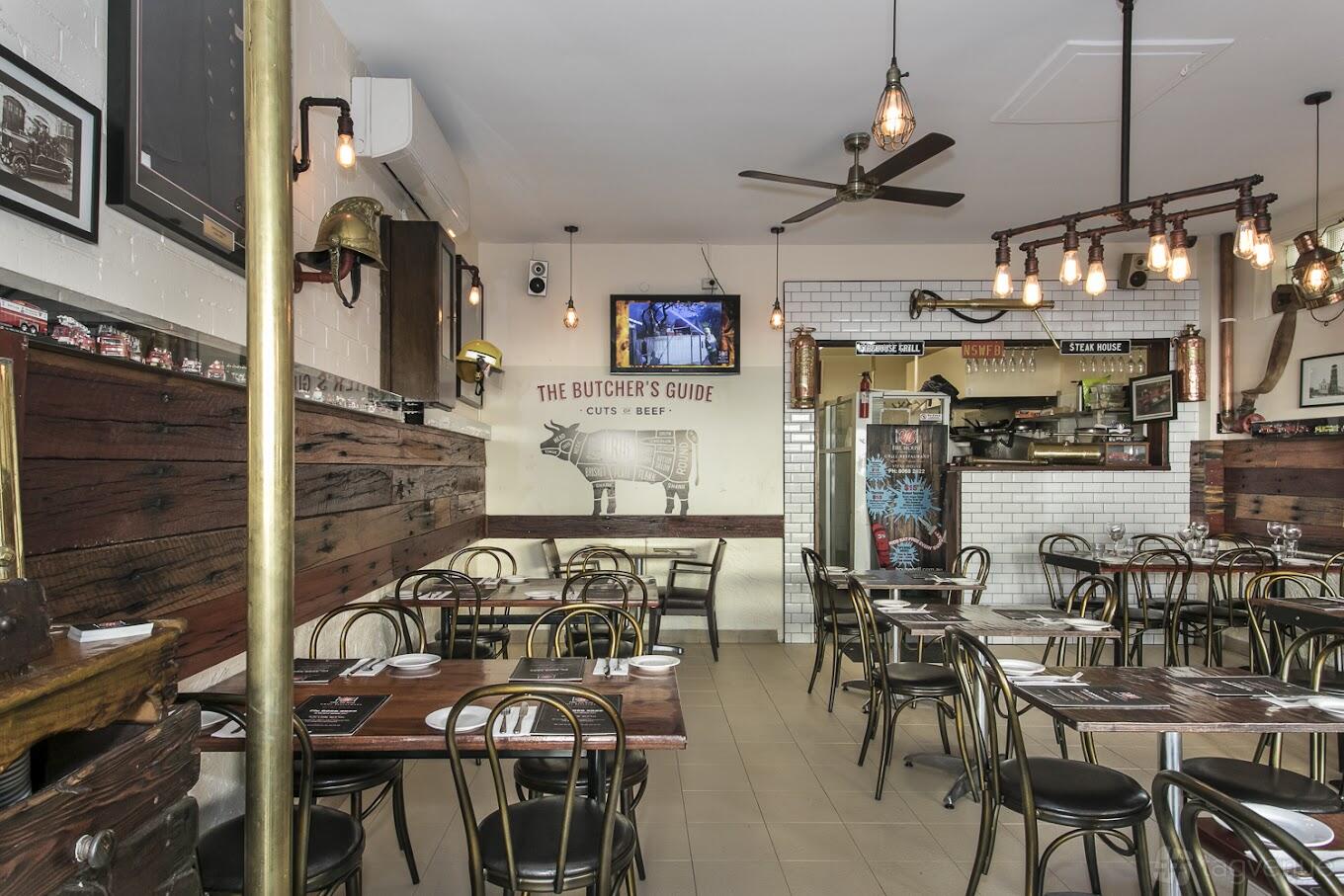 In Mortdale, this 90-square-meter gem is a versatile venue offering a cozy function room, an industrial-chic main dining area, and a charming alfresco zone. Blending modern comfort with rustic charm, it’s the ultimate spot for everything from intimate dinners to lively parties. With polished wooden furniture, vintage firehouse memorabilia, and warm, inviting lighting, the interiors exude character, while the alfresco area adds an airy, open vibe with tiled floors and rustic decor.