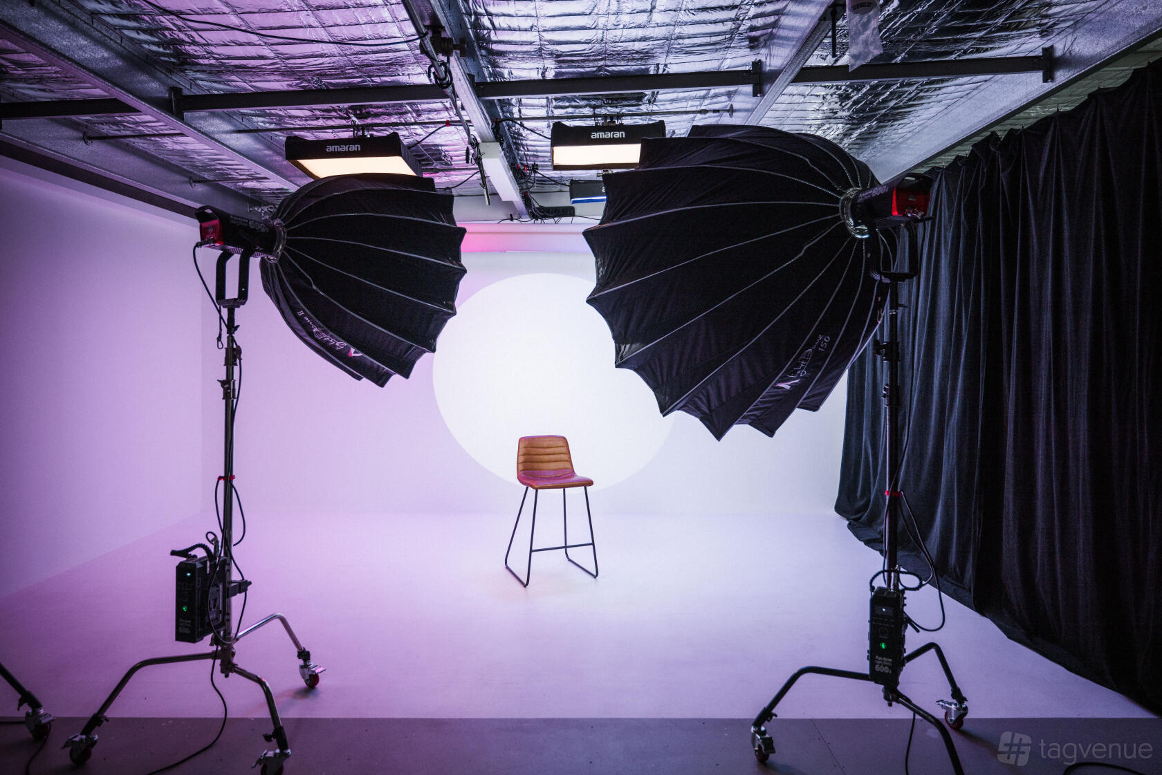 A 6 x 4 metre white space with a full production lighting suite ready for a shoot of any scale. From a casual headshot session to a full on production, Studio 1 is ready!