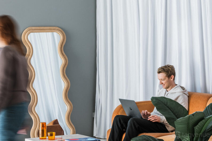 Content Studio: Content creation is catered for here with a 9 x 6-meter cyclorama wall, a multicolour backdrop system, and an elegantly appointed corner. The area has plenty of natural light for all manner of creative endeavors.