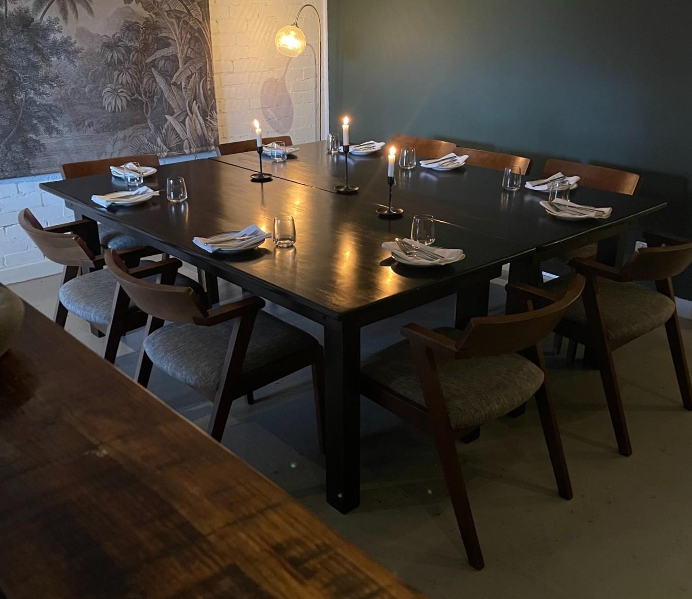 Our private dining room is perfect for groups of 6 to 14 guests. Located in a separate section of the venue, it offers a true sense of privacy, with direct access to bathrooms and a warm, intimate atmosphere. The space features a darker, more refined feel — choose to dine with the backdrop of our pasta-making kitchen, or convert the space into your own private bar.