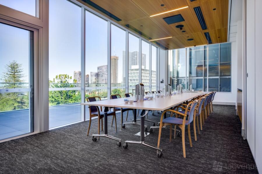 The event room is located on Level 6. As a flexible venue, the room can be divided into two or three function rooms and set in a variety of ways to accommodate breakfast, lunches, dinners, conferences, and cocktail-style events.