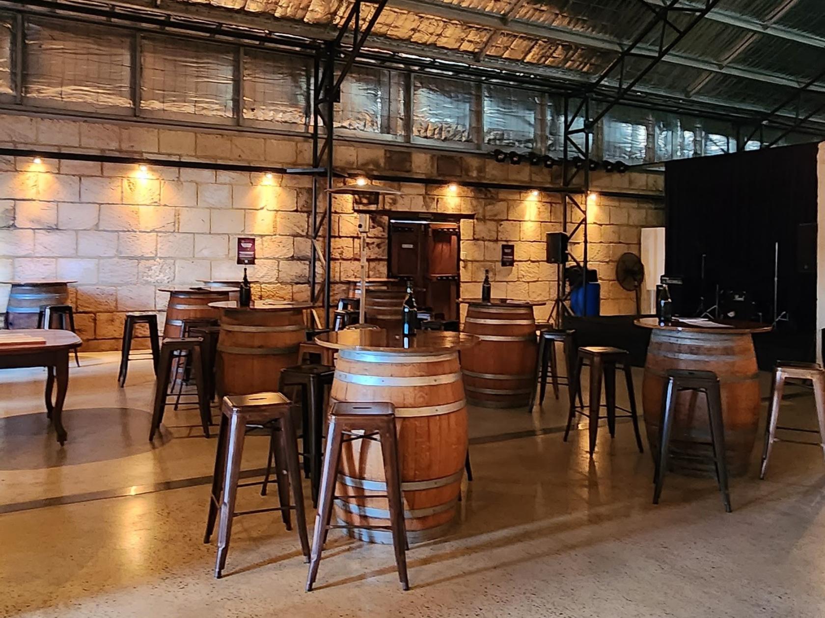 Garbin Estate Wines envelops visitors in a space where the legacy of winemaking is palpable in every detail. The interior is a harmonious blend of industrial design and vinous tradition, with the high, corrugated metal ceilings giving a sense of openness above, while the solidity of concrete floors grounds the space. The walls, bearing a patina of age, showcase large canvases that depict the sun-dappled vineyards, offering guests a visual journey through the estates where the wines begin their story.