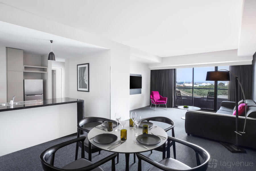 Spacious rooms cater to business and leisure travelers with daily service, air-conditioning, full kitchen and laundry facilities, Foxtel TV, and internet. Some apartments have private balconies with views of the city or Melbourne Botanical Gardens. Options include a One Bedroom Spa Apartment with a two-person spa bath or a Premium Two Bedroom Corner Apartment with views of the Arts Centre spire.