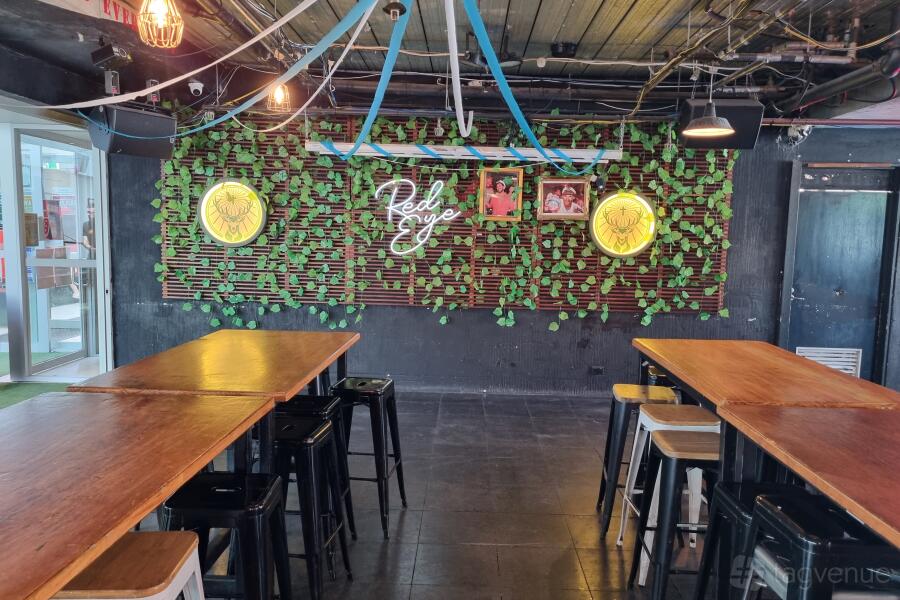 It features a mix of high tables, cozy corners, and open spaces, accommodating diverse event needs. Whether hosting a trivia night, silent disco, or celebratory gathering, Red Eye Bar promises an unforgettable experience.