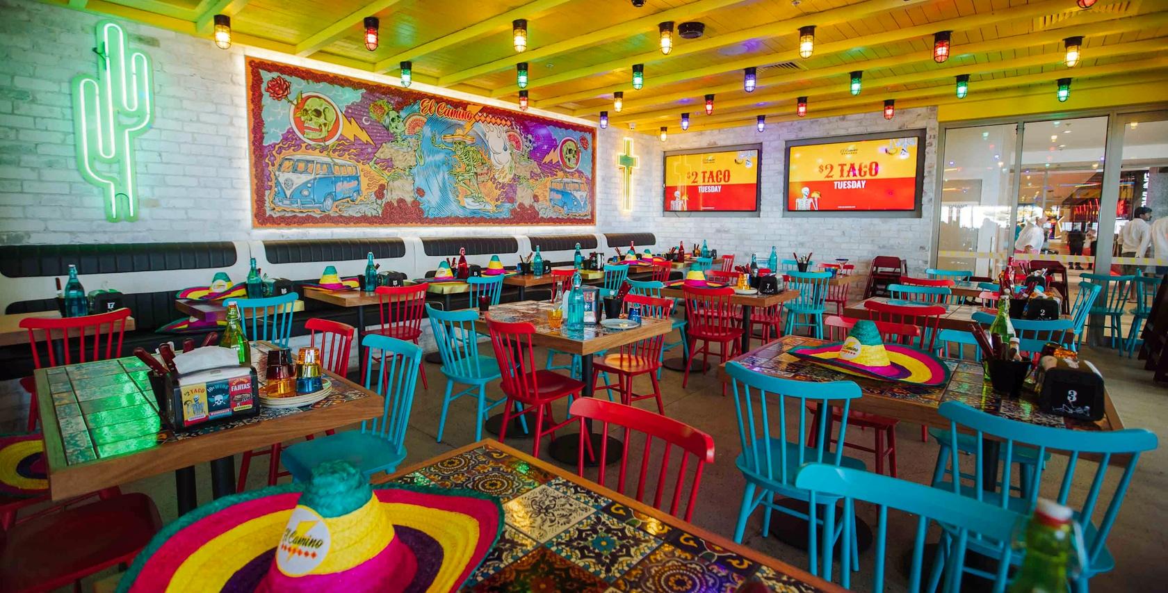 We are on Cavill Avenue in the Paradise Centre, steps from the beach. Our venue offers a bold Tex-Mex energy with colorful interiors, custom neon, sombreros, and lots of room to celebrate! The space includes The Nook, a semi-private section, and the option to hire the entire place!