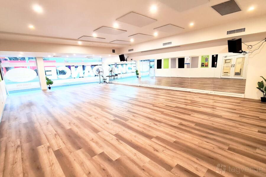 Our space comprises of 4 individual studios of varying sizes that can accommodate between 10 - 55 people. Each has a large open floor plan, an air-conditioning unit, large mirrors, and its own sound system.