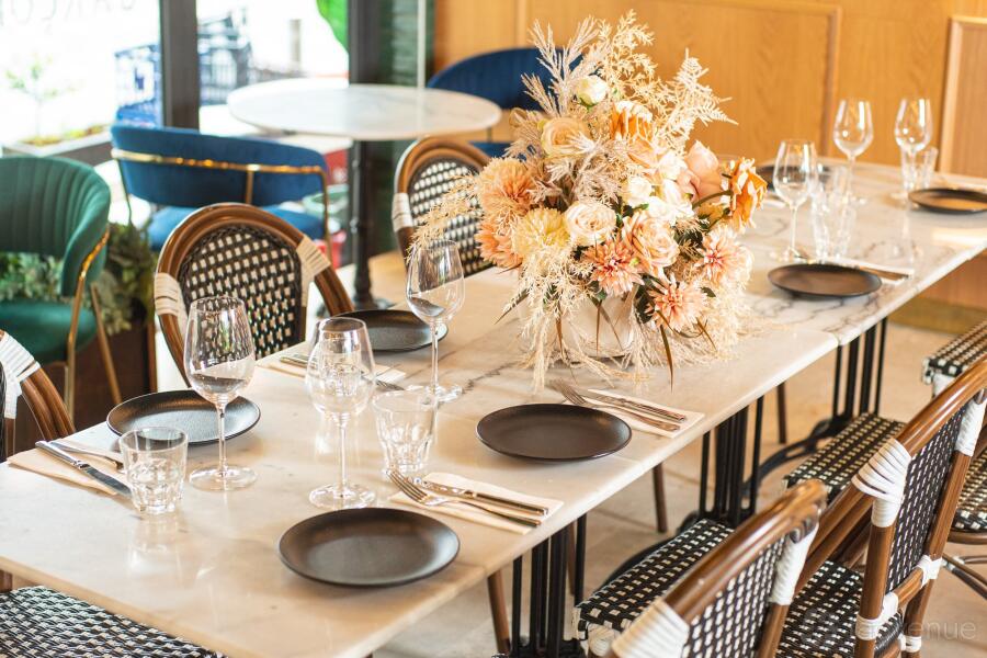 With marble tables, pink and gold hues, a canopy of green and an al fresco dining area, our venue is the perfect space to enjoy a day of delicious food, laughter and free flowing bubbles.