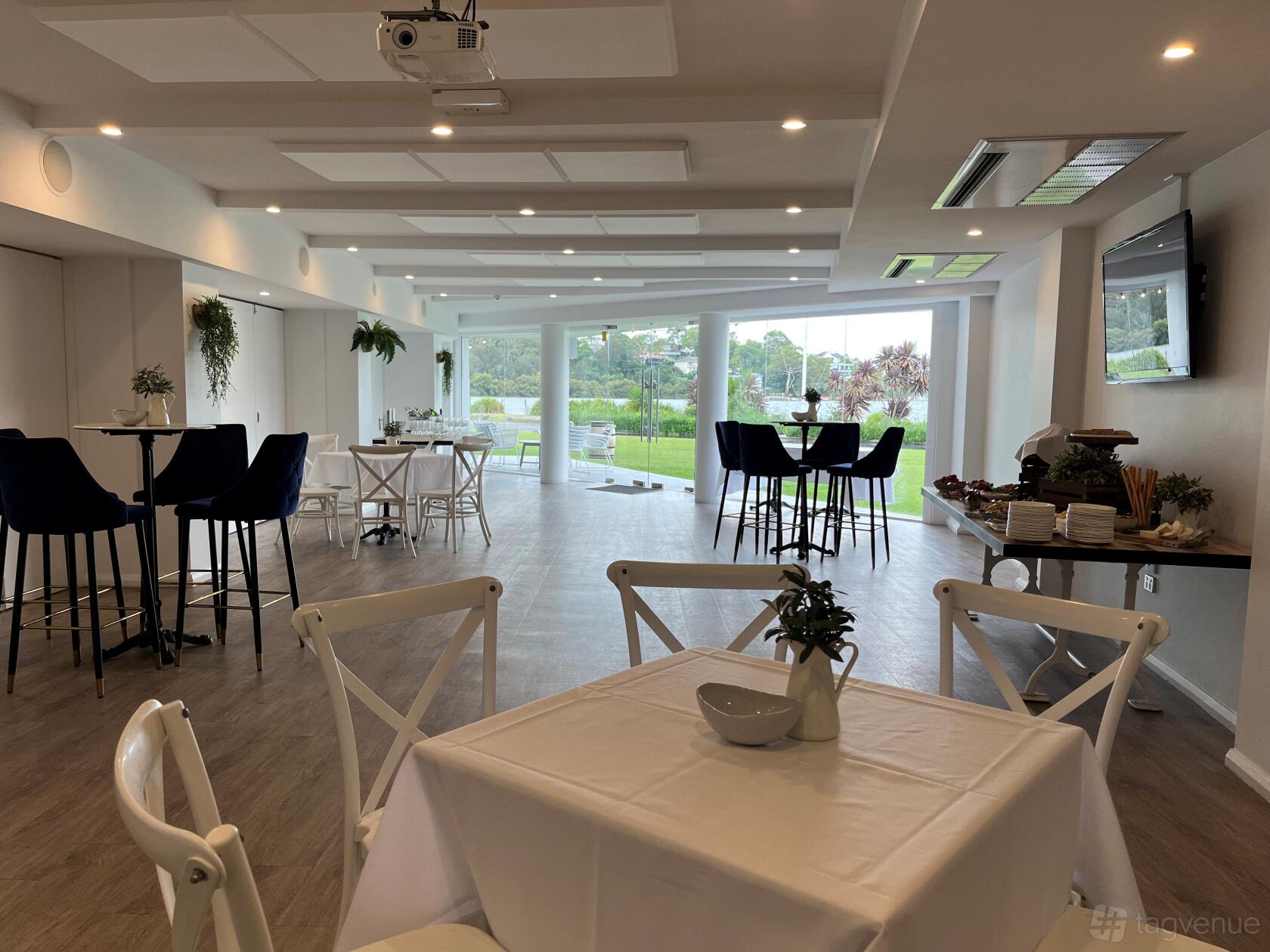 The Starboard Private Dining Room has a light bright whitewashed coastal vibe leading to the sprawling waterfront lawn, perfect for canapes and cocktails with uninterrupted views overlooking the picturesque Georges River and Kyle Bay peninsula.