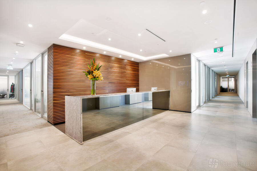 Welcome to Compass Offices at 9 Castlereagh Street, Sydney, where architectural elegance meets modern functionality in the heart of the city's financial district. This iconic office tower is celebrated for its striking design, featuring a grand lobby with an expansive atrium that bathes the interior in natural light.